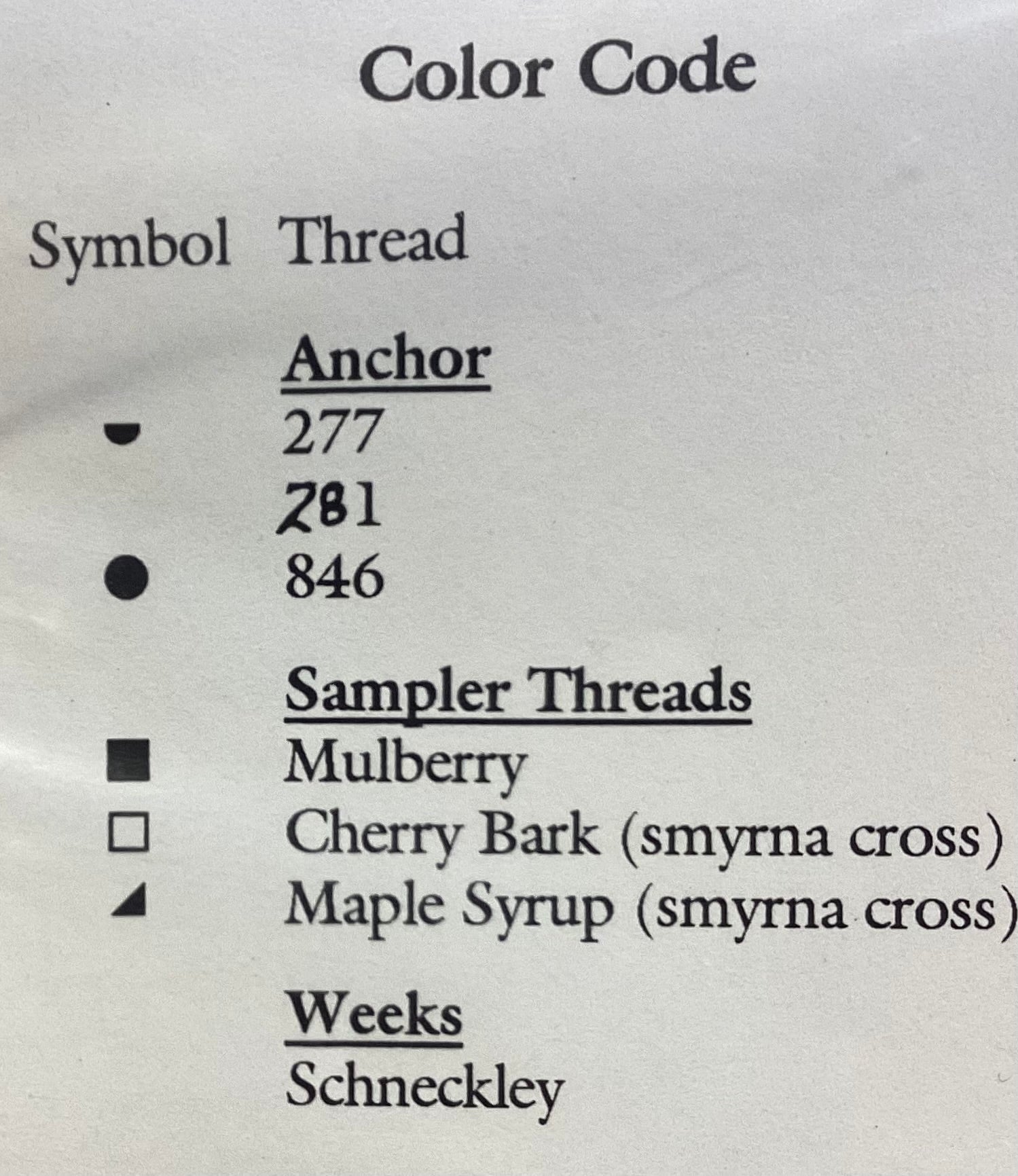 Stitch count: 277 x 48 on 32 count Ash Grey Linen from R & R Reproduction