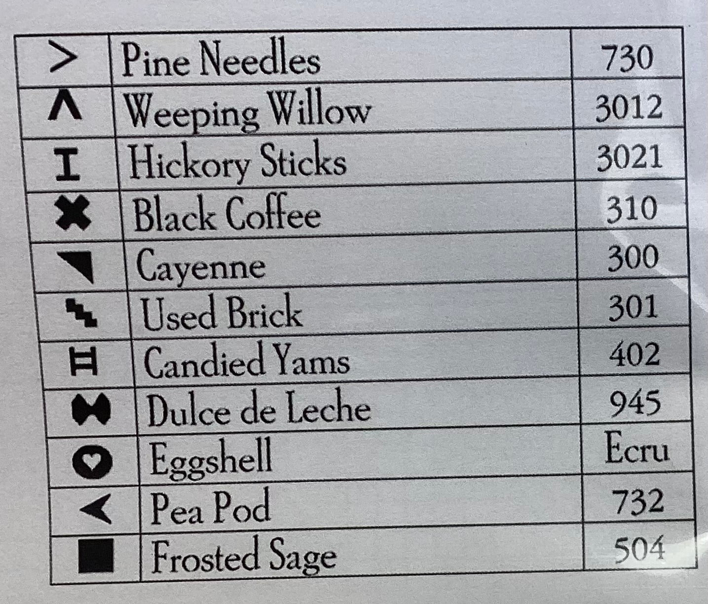 Stitch count: 50 x 71 on 36 count Vintage Country Mocha