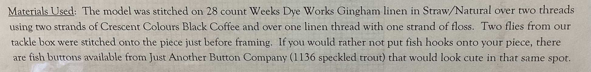 Stitch count: 120 x 62 on 28 count Straw linen from Weeks Dye Works