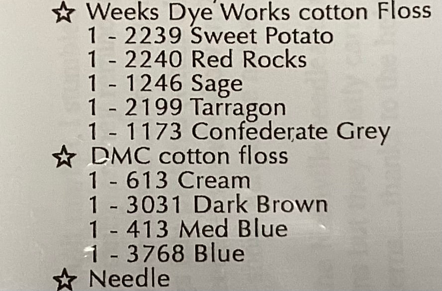 Stitch count: 105 x 103 on 30 count Mocha by Weeks Dye Works