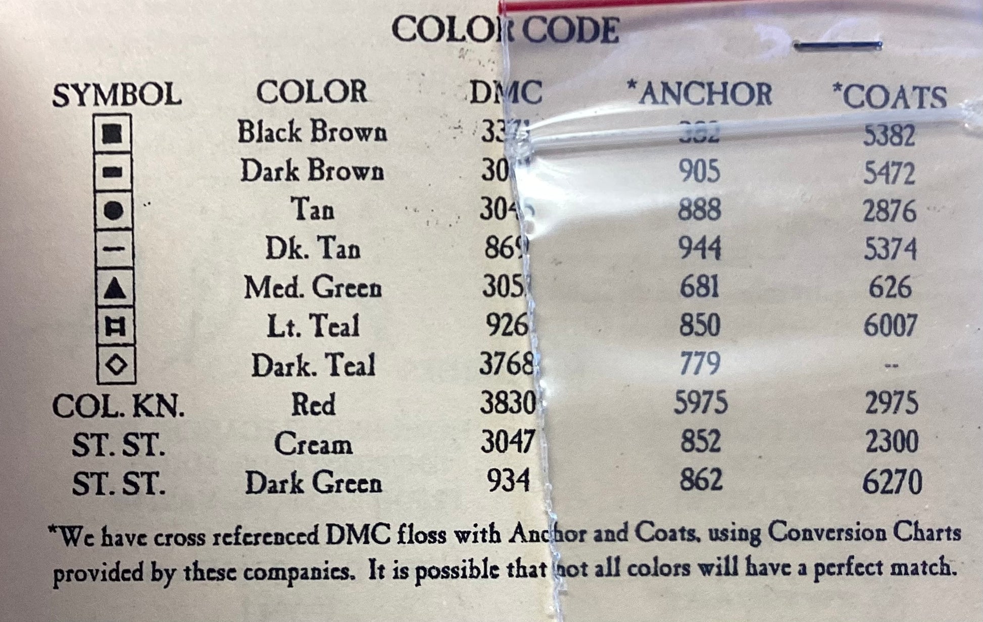 Stitch count: 35 x 32 on 28 count Dirty Linen Cashel linen