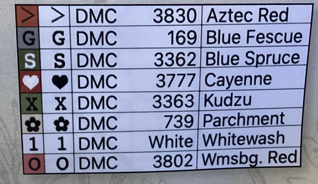 Stitch count: 84 x 36 on 32 count Natural Belfast