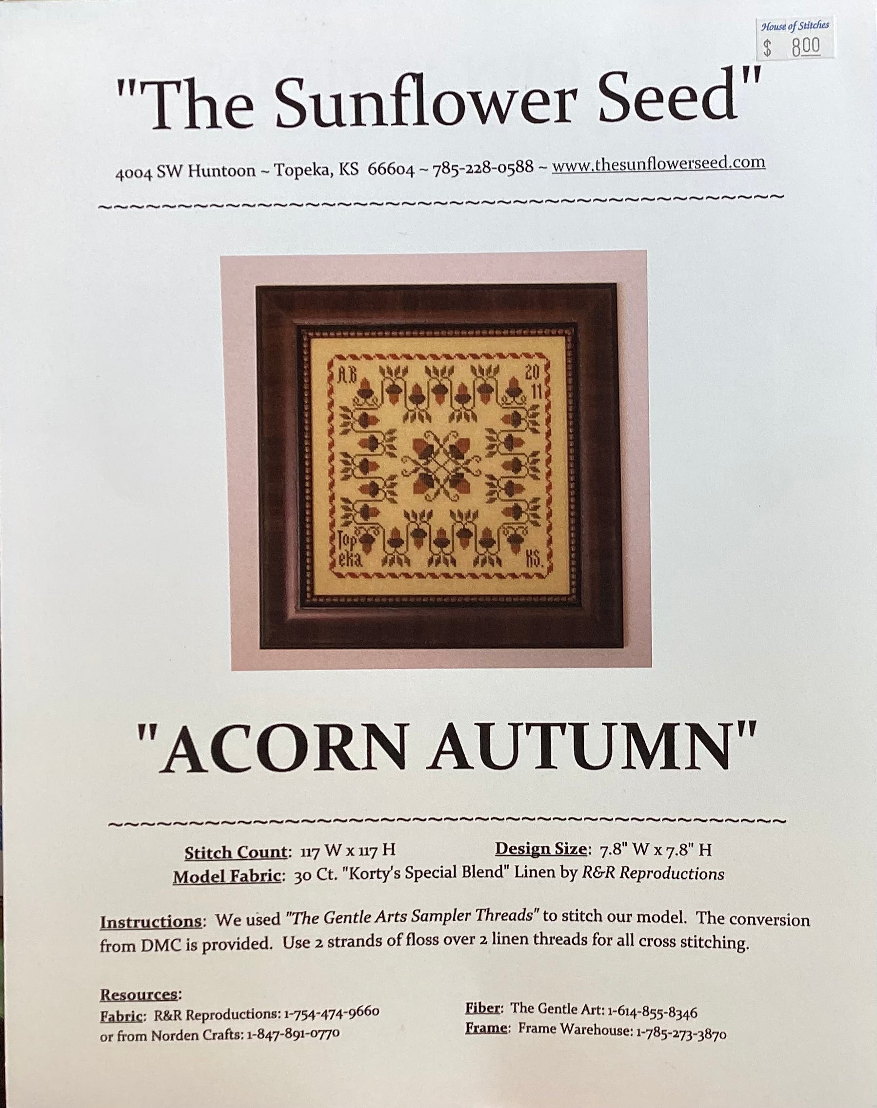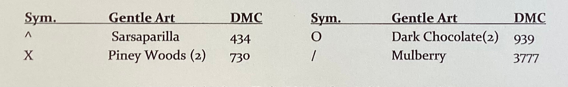 Stitch count: 117 x 117 on 30 count Korty’s Special blend linen by R & R Reproduction