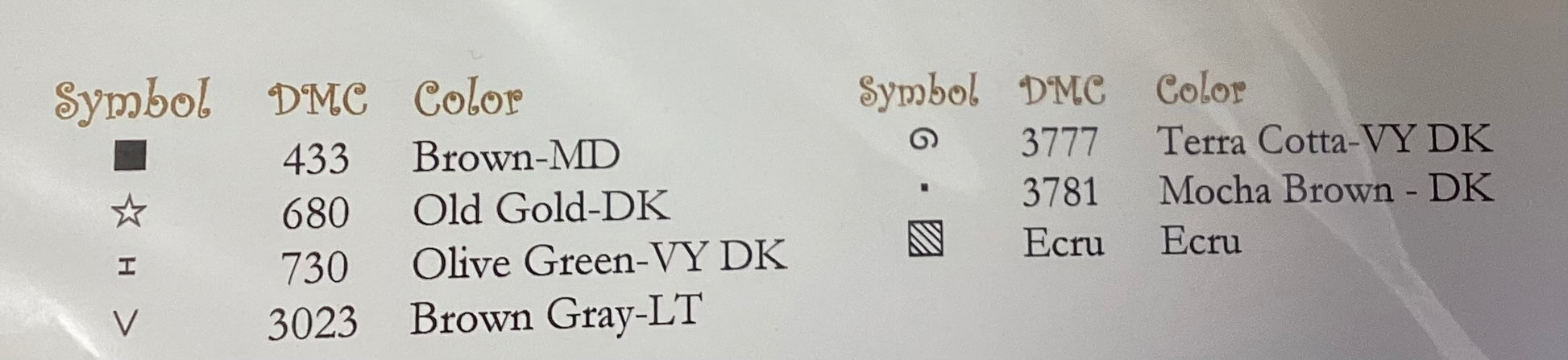 Stitch count: 53 x 54 on 30 count Straw linen from Weeks Dye Works