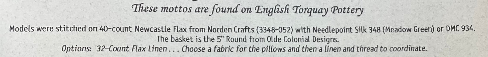 Models stitched on 40 count Newcastle Flax from Norden Crafts