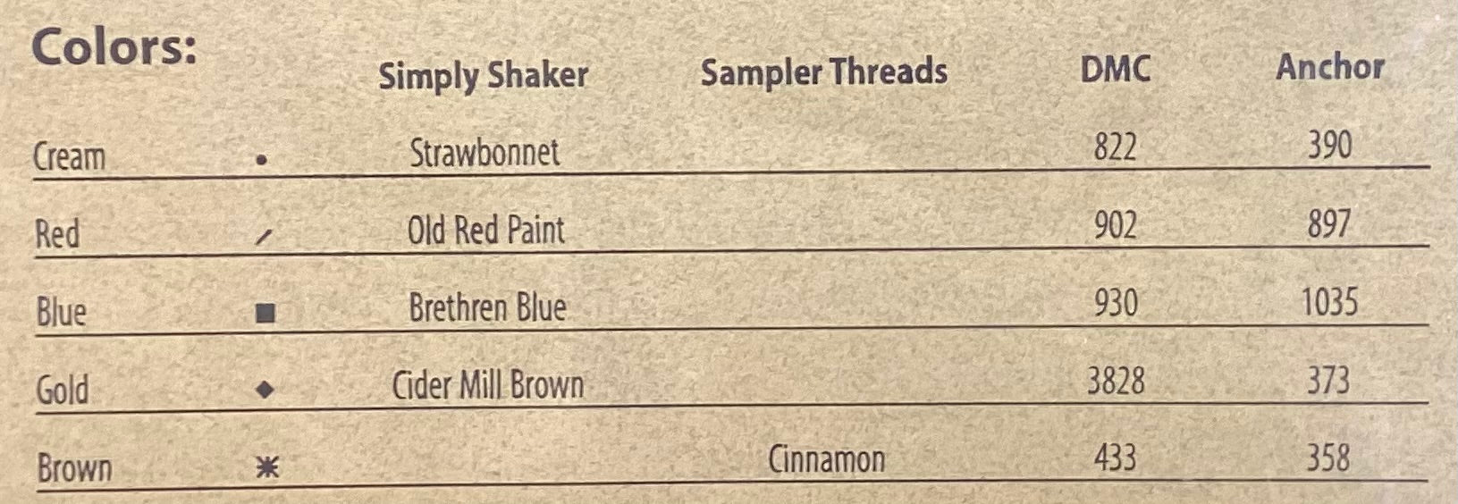 Stitch count: 79 x 79 on 35 count Crown Roast from R & R Reproduction