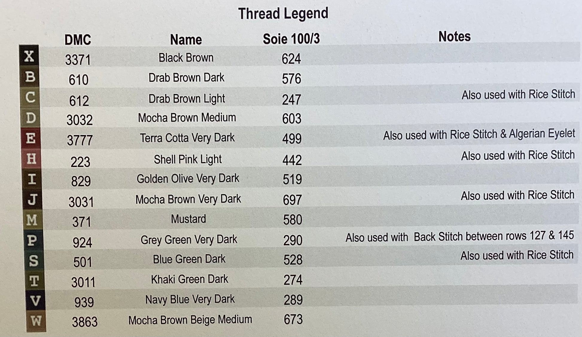 Stitch count: 85 x 272 on 36 count Vintage Beeswax linen by R f R Reproduction