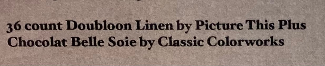 Stitch count: 80 x 90 on 36 count Doubloon linen by Picture This Plus