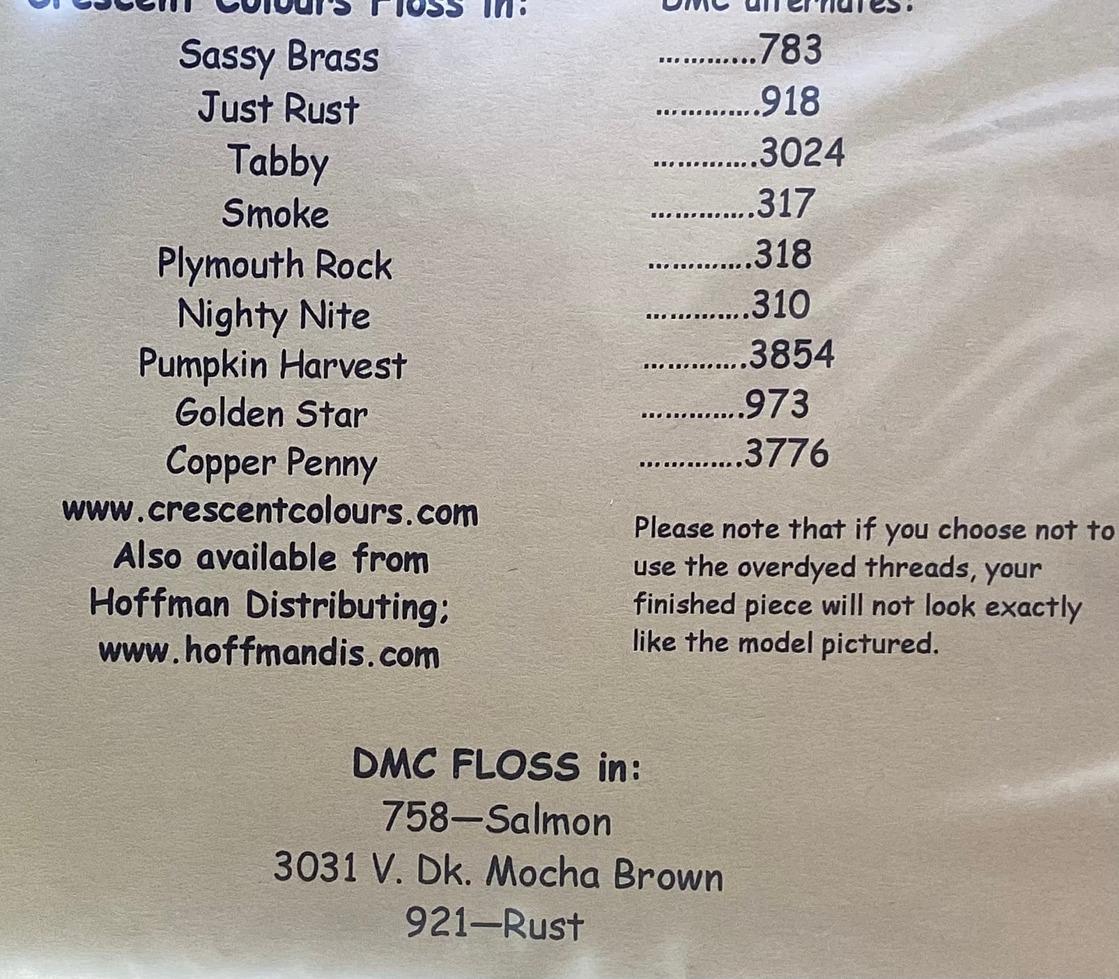 Stitch count: 61 x 63 on 28 count Amber linen from Wichelt