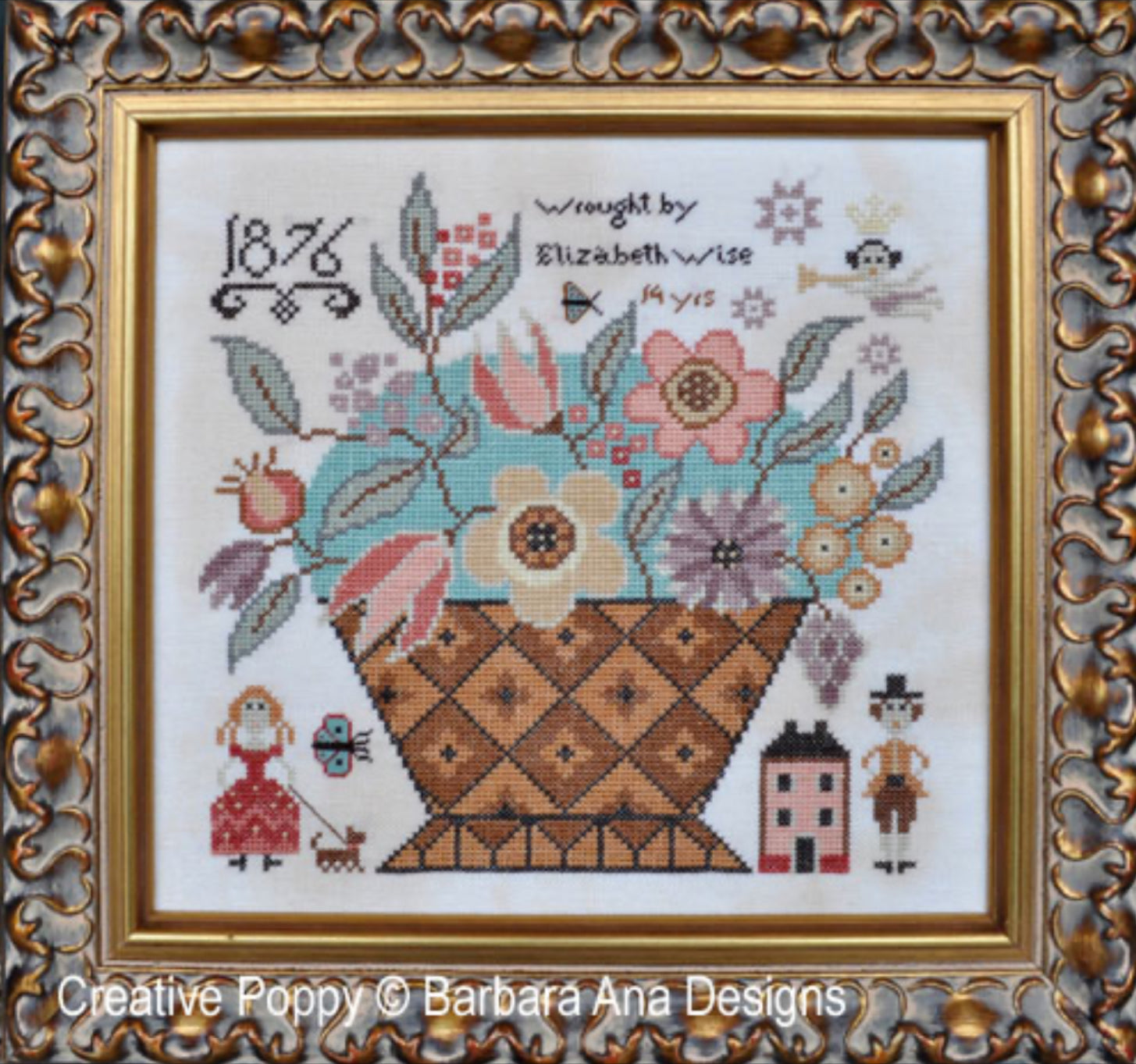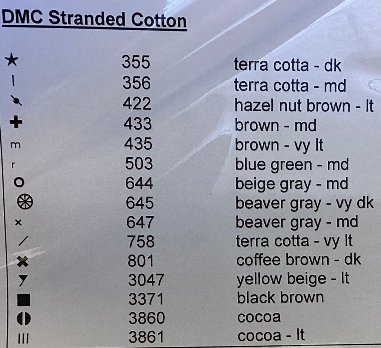 Stitch count: 124 x 120 on 40 count cream linen from Zweigart