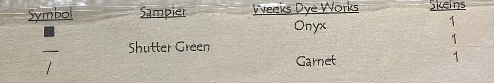 Stitch count: 85 x 75 on 28 count Jobelan Lambswool evenweave from Wichelt