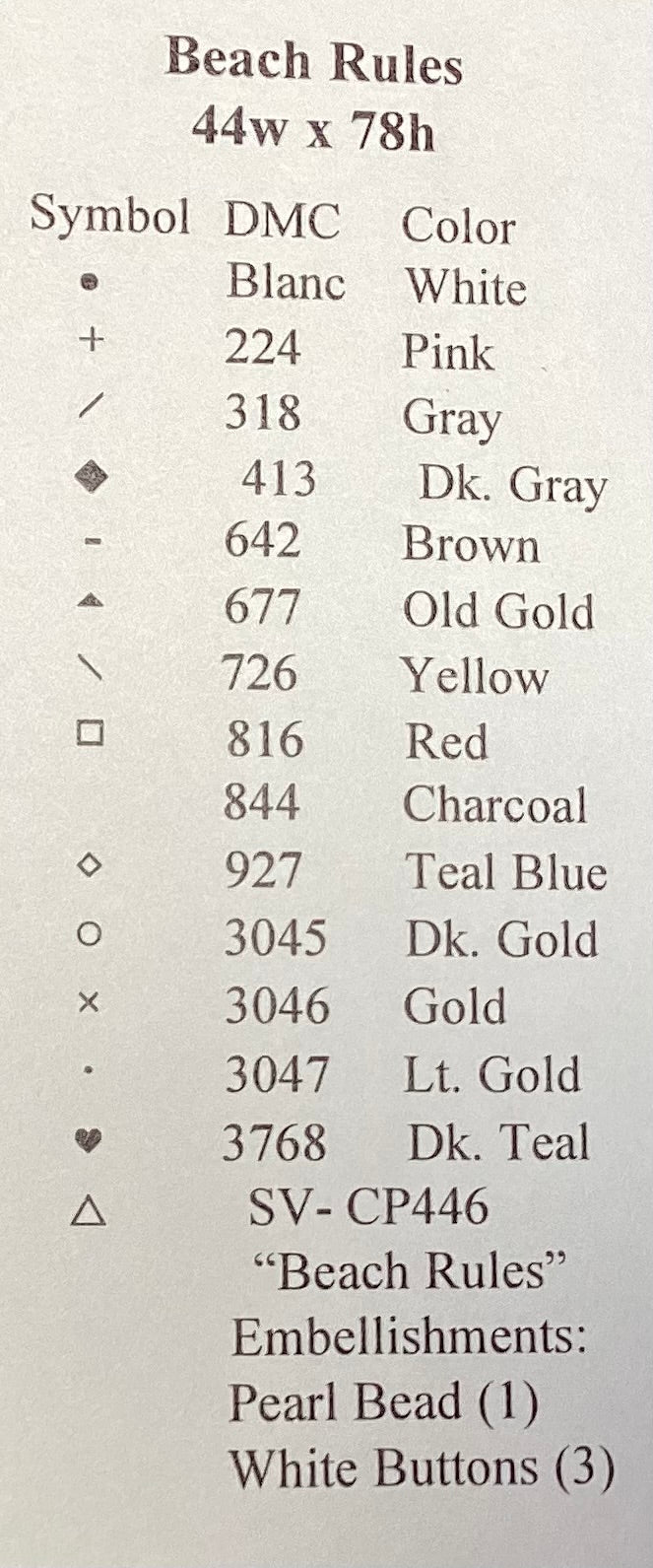 Stitch count: 44 x 78 on 28 count Platinum linen