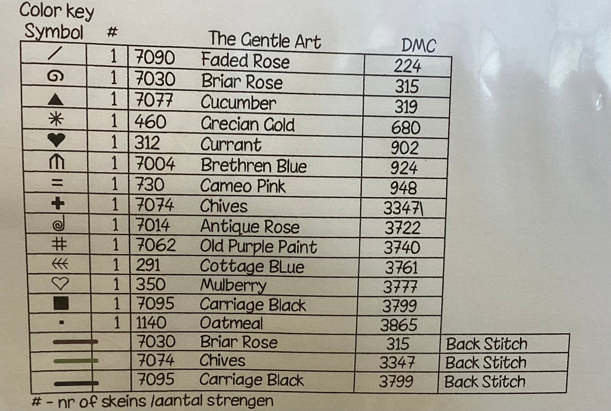 Stitch count: 157 x 107 on 36 count Prim Grey by Dames of the Needle