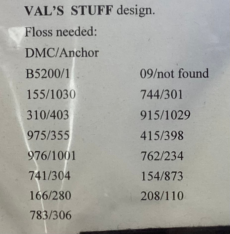 Kit includes the charts, 18 count perforated paper, and the wool felt to complete design. Floss and needle NOT included.