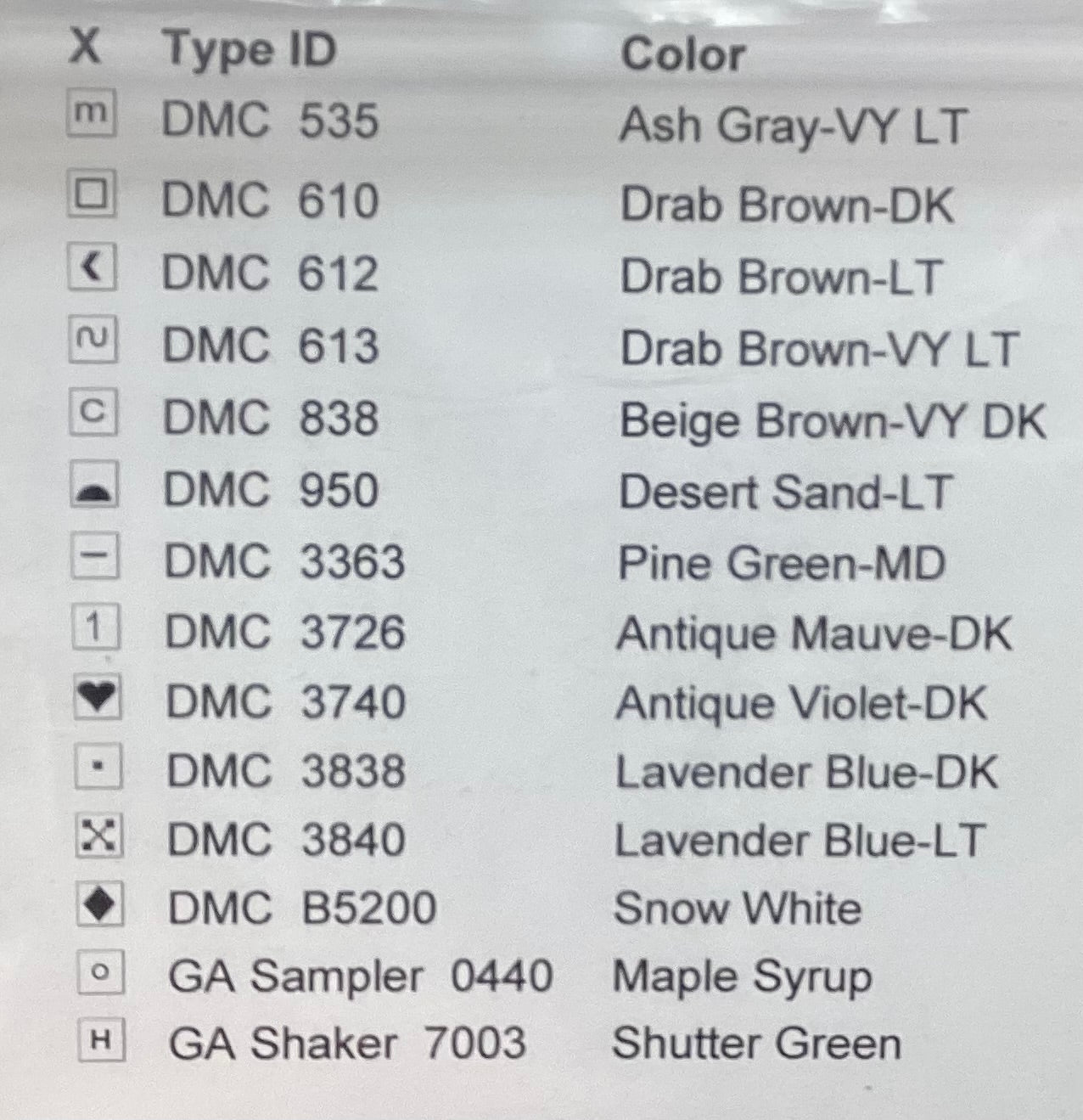 Stitch count: 57 x 86 on 28 count ivory Lugana