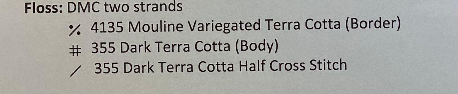 Stitch count: 72 x 50 on 14 count French Café Mocha Aida
