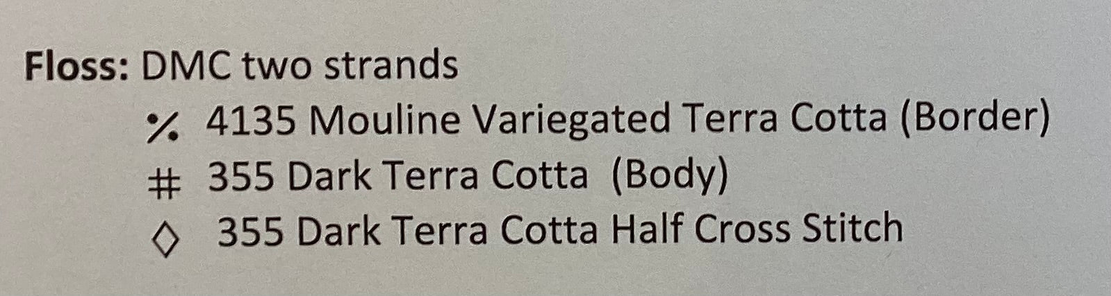 Stitch count: 72 x 50 on 14 count French Café Mocha Aida