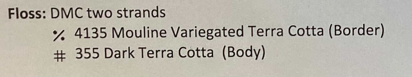 Stitch count: 72 x 50 on 14 count French Café mocha Aida
