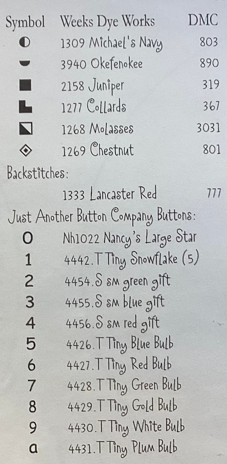 Stitch count: 64 x 64 on 30 count Linen linen by Weeks Dye Works
