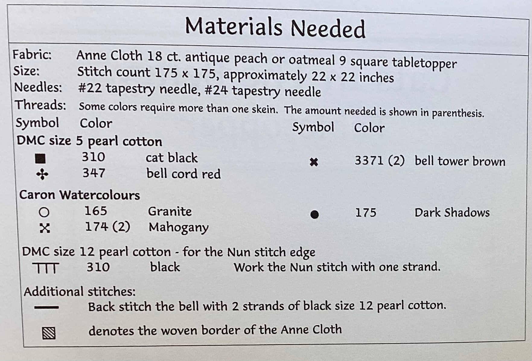 Stitch count:175 x 175 on 18 count Anne Cloth antique peach or oatmeal