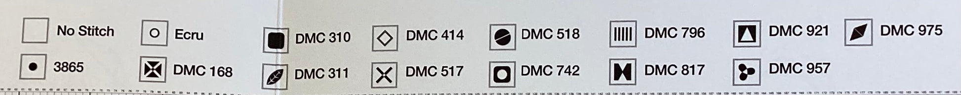 Stitch count: 190 x 111 on 18 count light blue Aida