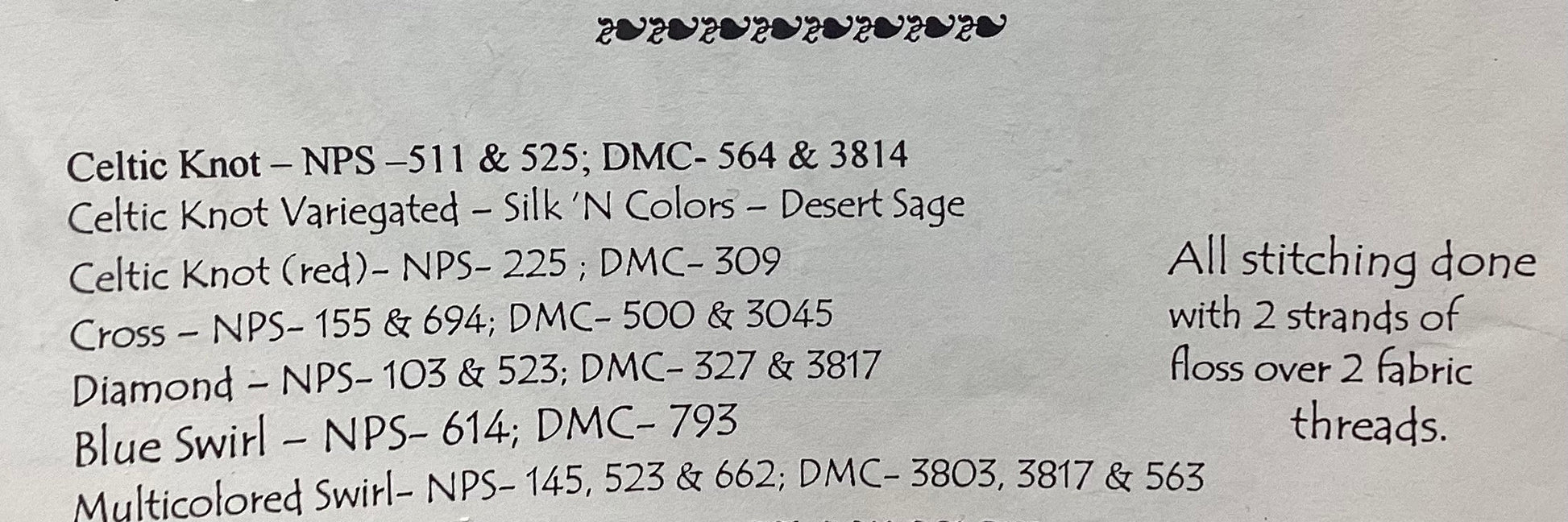 Design size: 5” x 5” on 32 count Antique Ivory Belfast linen from Zweigart
