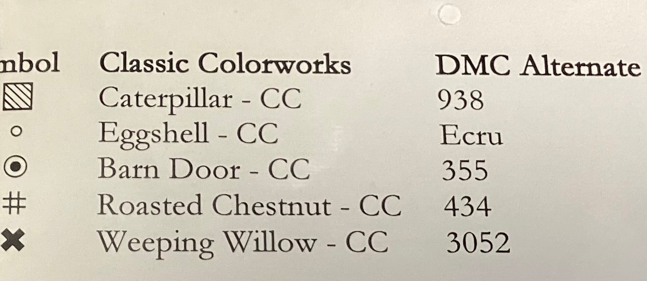 Stitch count: 59 x 34 on 32 count Irish Crème from R & R Reproduction