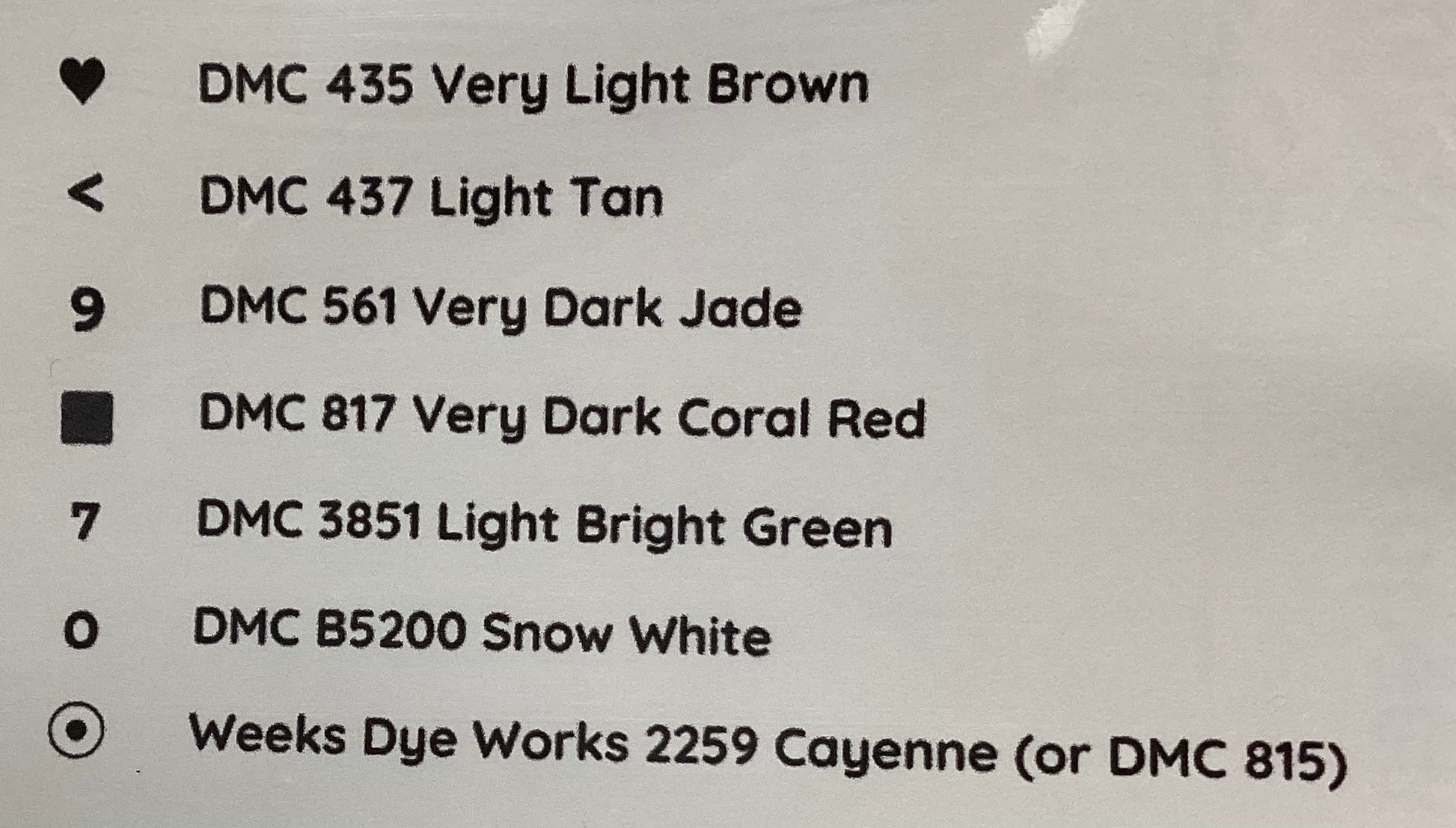 Stitch count: 33 x 81 on 28 count mushroom Lugana. By Zweigart