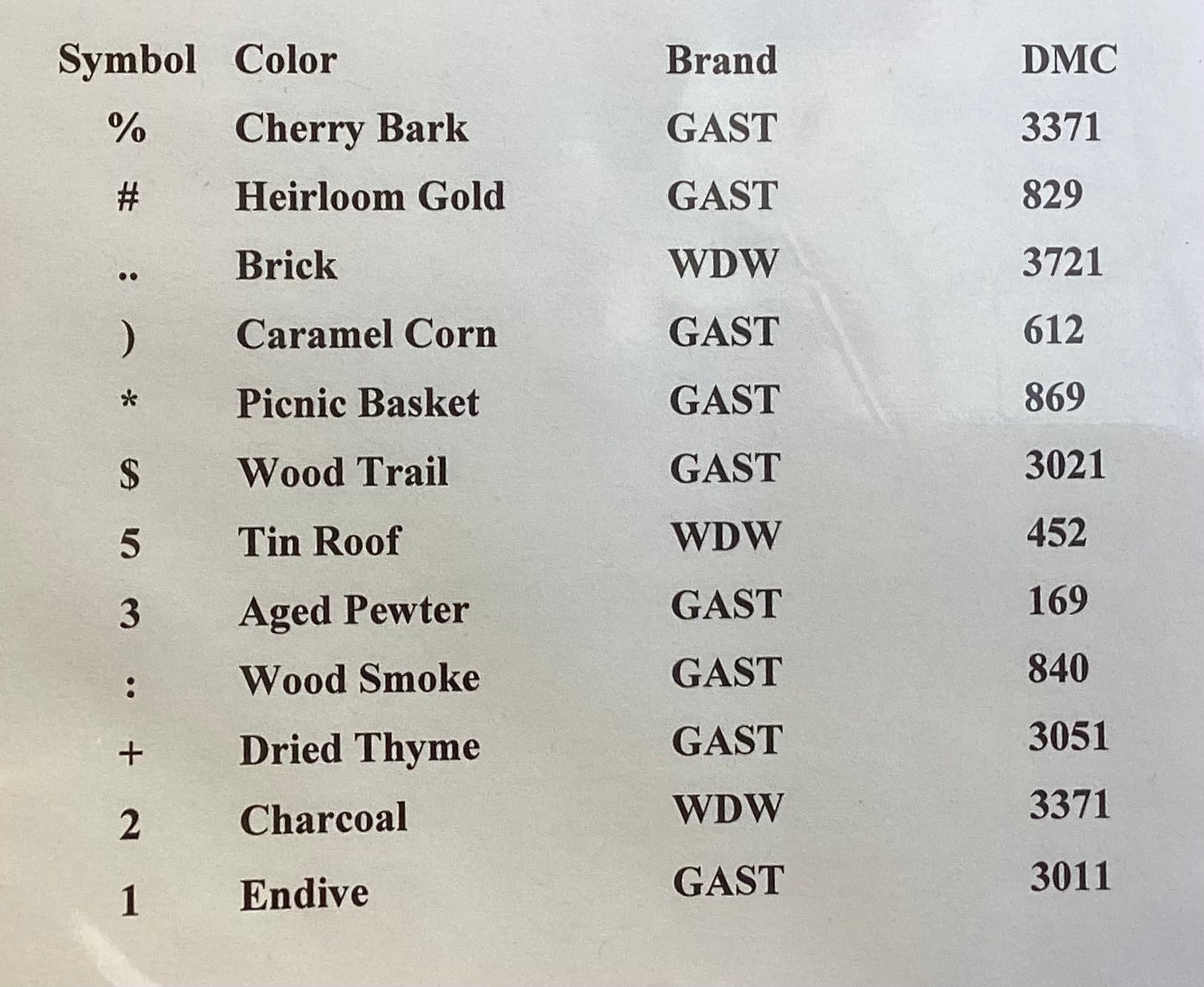 Stitch count: 90 x 84 on 30 count Cocoa by Weeks Dye Works