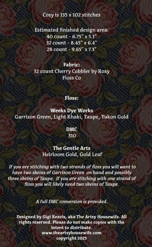 Stitch count:135 x 102 on 32 count Cherry Cobbler by Roxy Floss Co