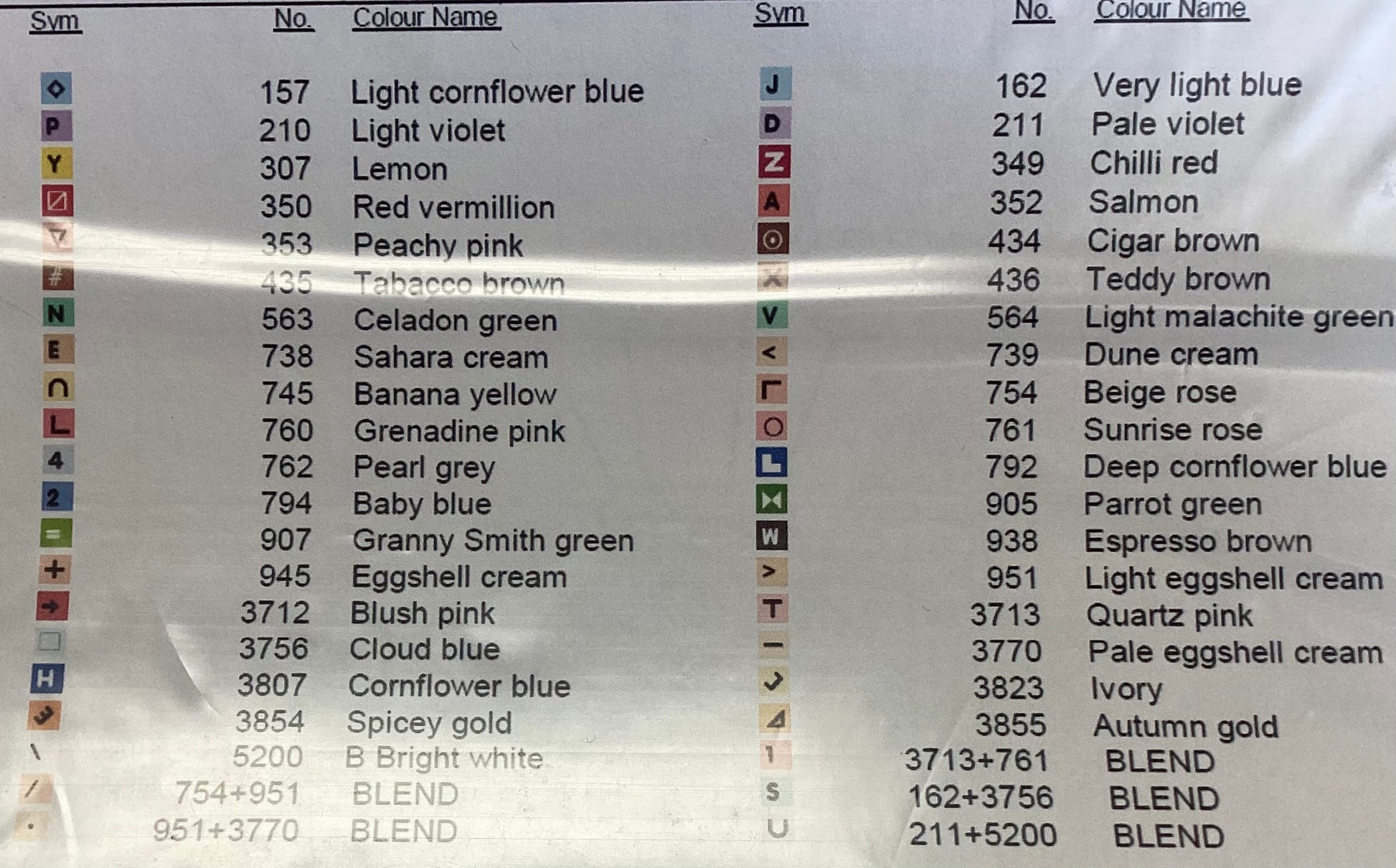 Stitch count: 152 x 130 on 14 count light blue Aida