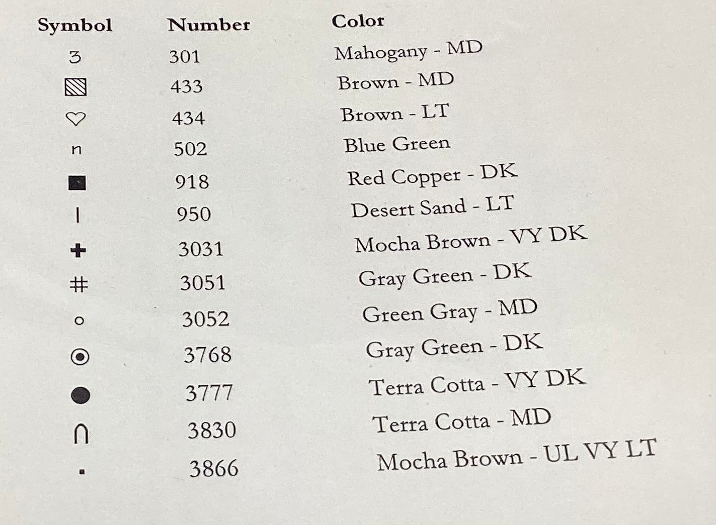 Stitch count: 105 x 69 on 28 count Putty Linen from Norden Crafts