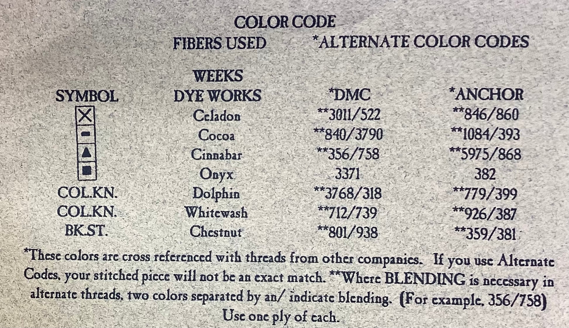 Stitch count: 39 x 49 on 28 count Star sapphire linen by Weeks Dye Works