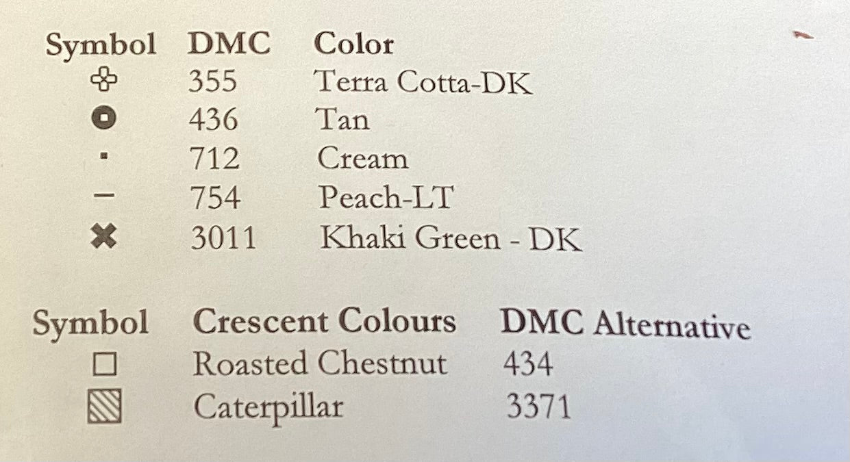 Stitch count: 55 x 55 on 30 count Cocoa linen from Weeks Dye Works