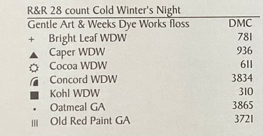Stitch count:72 x 66 on 28 count Cold Winter’s Night