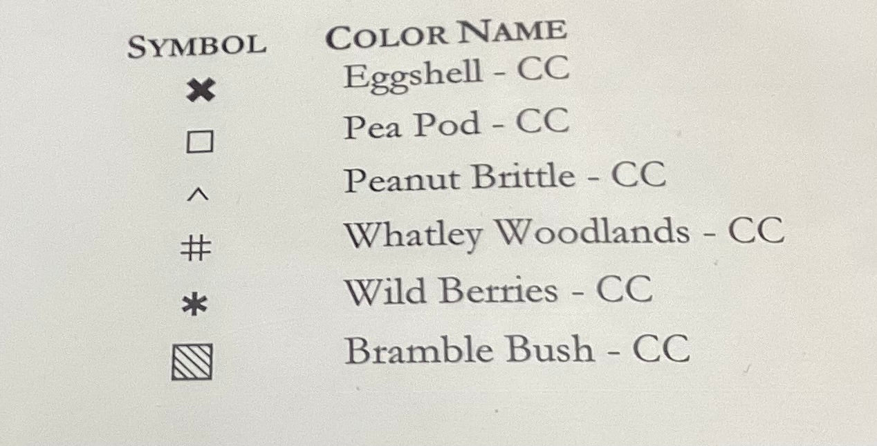 Stitch count:109 x 79 on 32 count Creek Bed Brown from R & R Reproduction