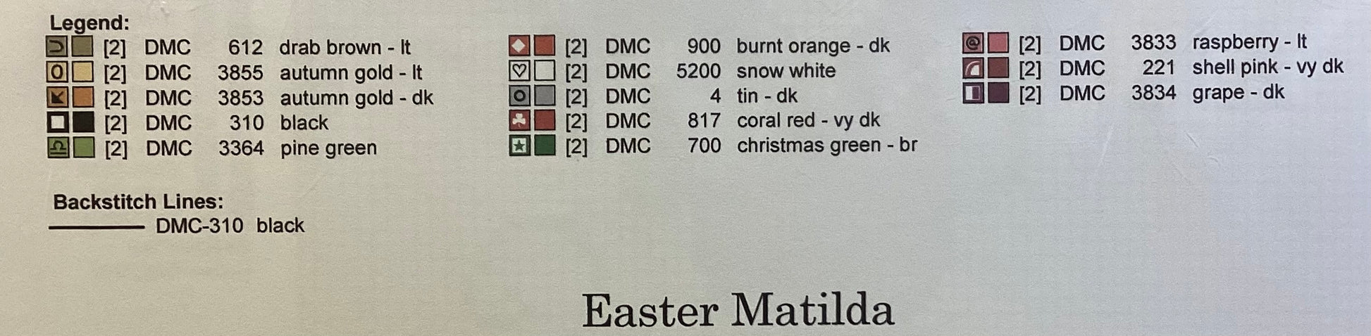Stitch count:75 x 73 on 28 count Light Purple Evenweave