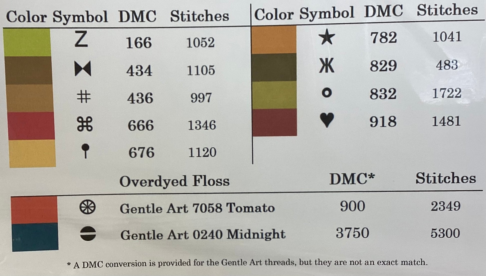 Stitch count: 157 x 259 on 40 count Arboreal linen by Cedar River