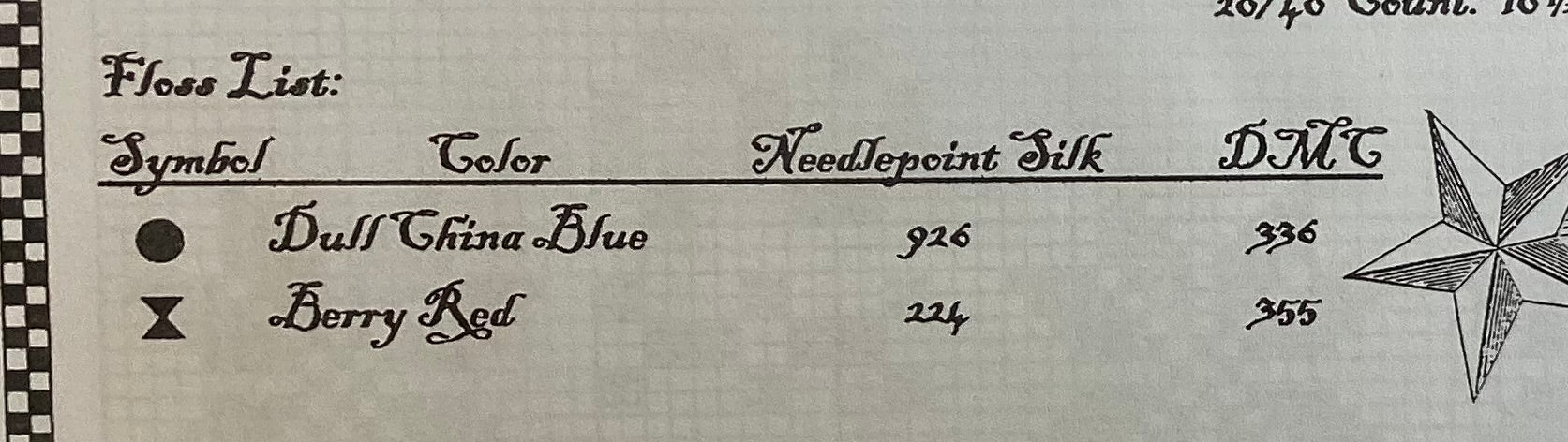 Stitch count:210 x 202 on 40 count Light Cappuccino from R & R Reproduction
