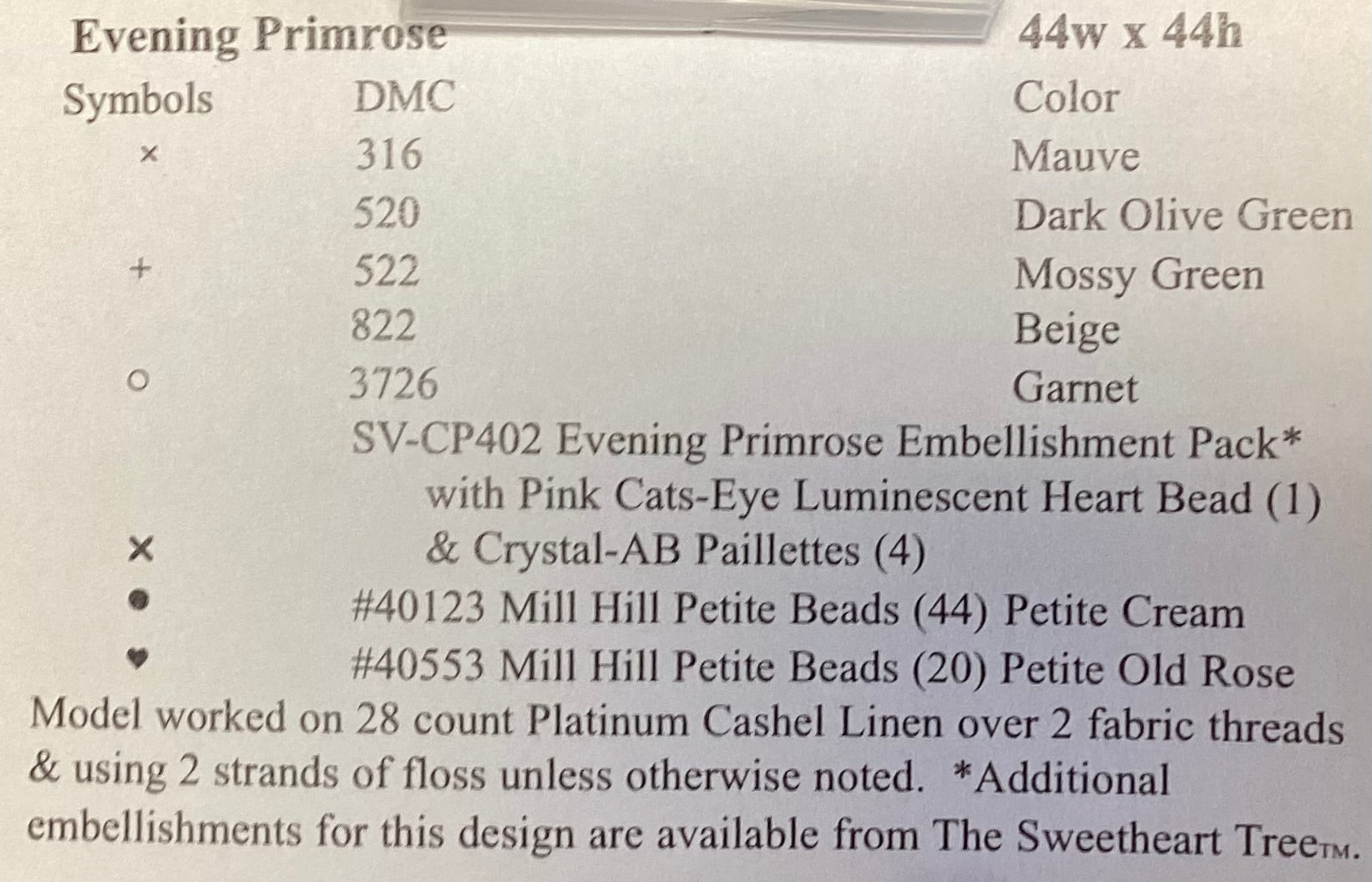 Stitch count: 44 x 44 on 28 count Platinum Cahsel linen