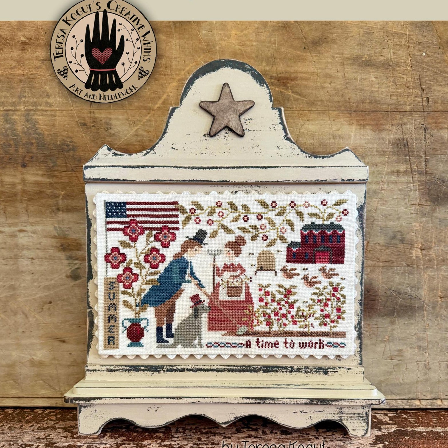 Model stitched 1 over 2 on 40ct Thornfield linen by Needle & Flax.