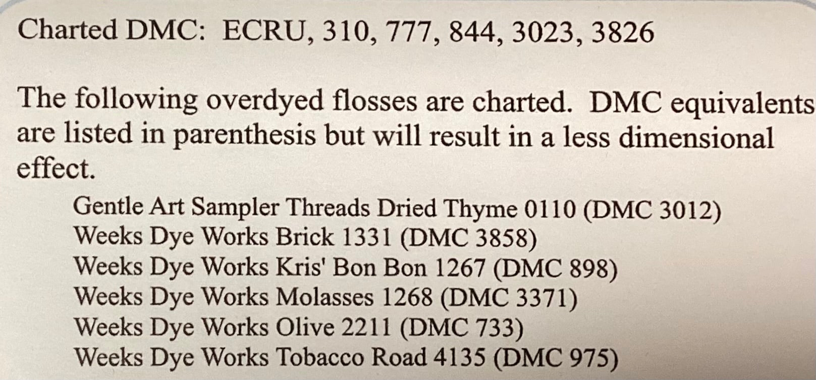 Stitch count: 120 x 61 on 32 count Sand linen from Picture This Plus