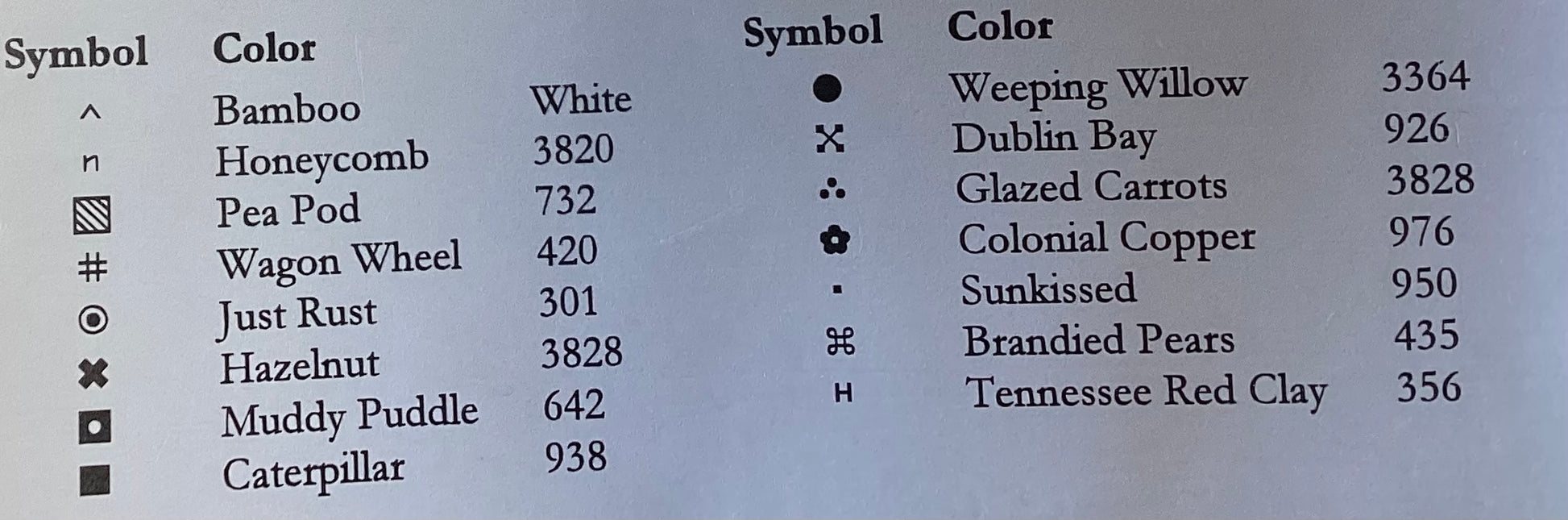 Stitch count: 63 x 63 on 30 count Portobello linen from Access Commodities
