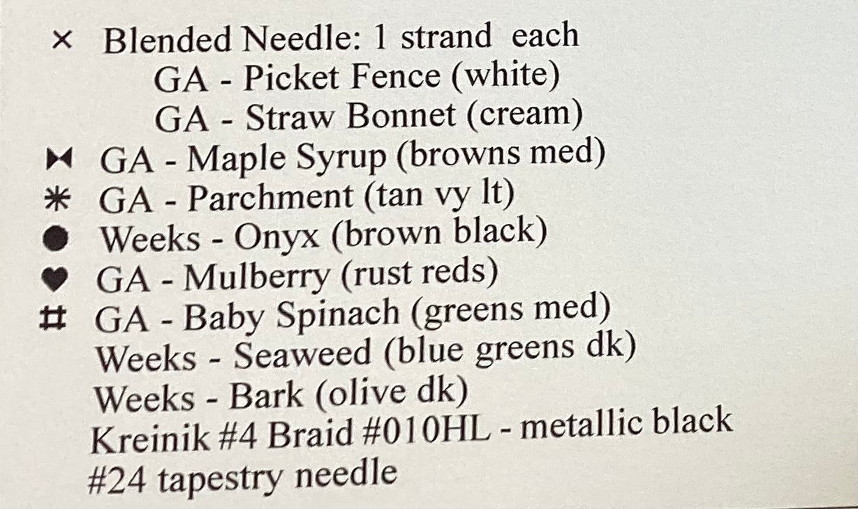 Stitch count: 56 x 56 on 28 count Dirty Linen Chashel linen