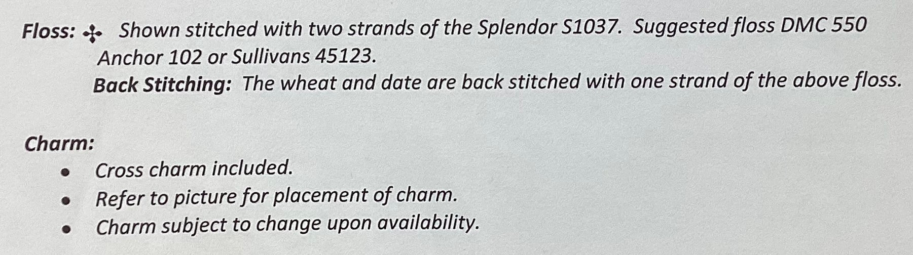 Stitch count: 45 x 67 on 14 count Lavender Whisper Aida