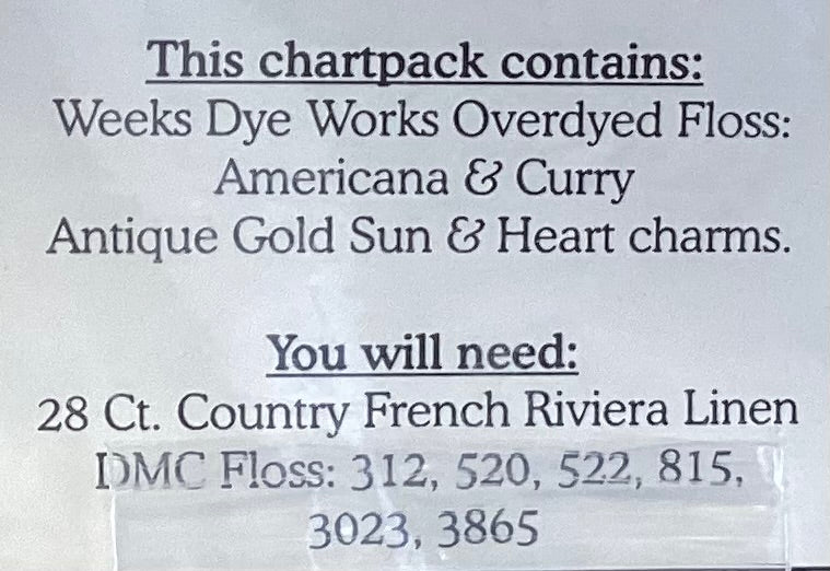 Stitch count: 39 x 78 on 28 count country French Riviera linen