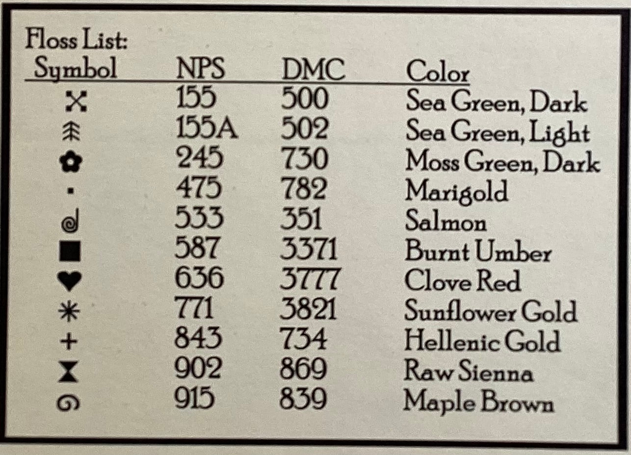Stitch count: 98 x 115 onn40 count Pearled Barley from Lakeside Linen