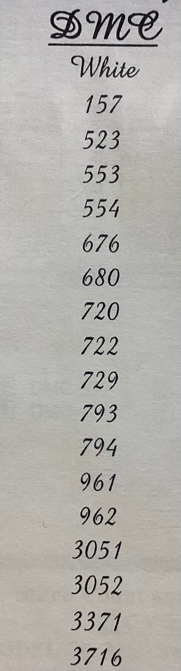 Stitch count: 224 x 41 on 32 count Sandstone linen by Wichelt