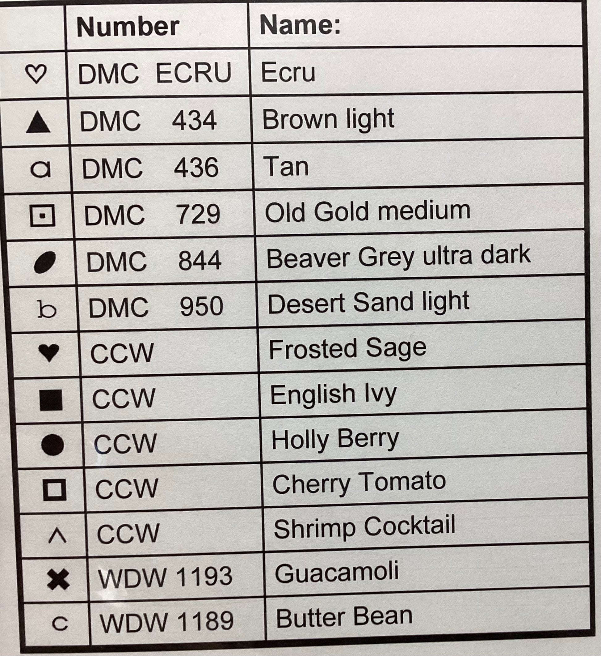 Stitch count: 91 x 96 on 32 count Oaken linen by Picture This Plus