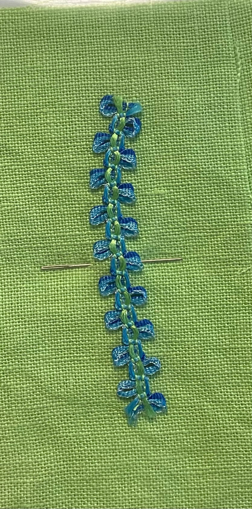 Kit includes pattern, needle, trim for kite tail and 32 count Lime Zest Linen from Lakeside Linen